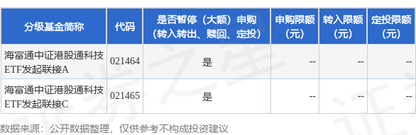 注:本公司决定于2025年10月29日(星期三)暂停海富通中证港股通科技ETF发起联接基金的申购(含日常申购和定期定额投资业务)、赎回和转换业务。